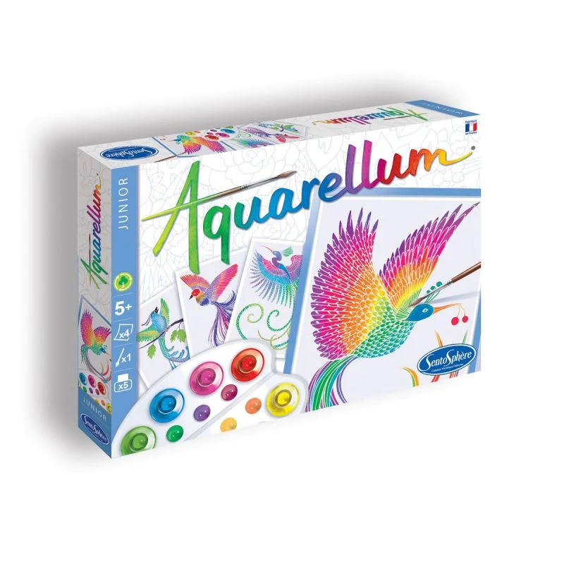 Un coffret avec 4 jolis tableaux d’oiseaux du paradis à créer de la collection Aquarellum junior accessible dès 5 ans. Les enfants vont s’initier sans difficulté à la peinture à l’aide de cette technique de papier de vélin sertis qui empêche tout débordement et permet d’obtenir des résultats très valorisants. Les encres, non toxiques et lavables, peuvent être facilement mélangées entre elles afin d’obtenir une infinité de nuances laissant ainsi la créativité de l’enfant s’exprimer.