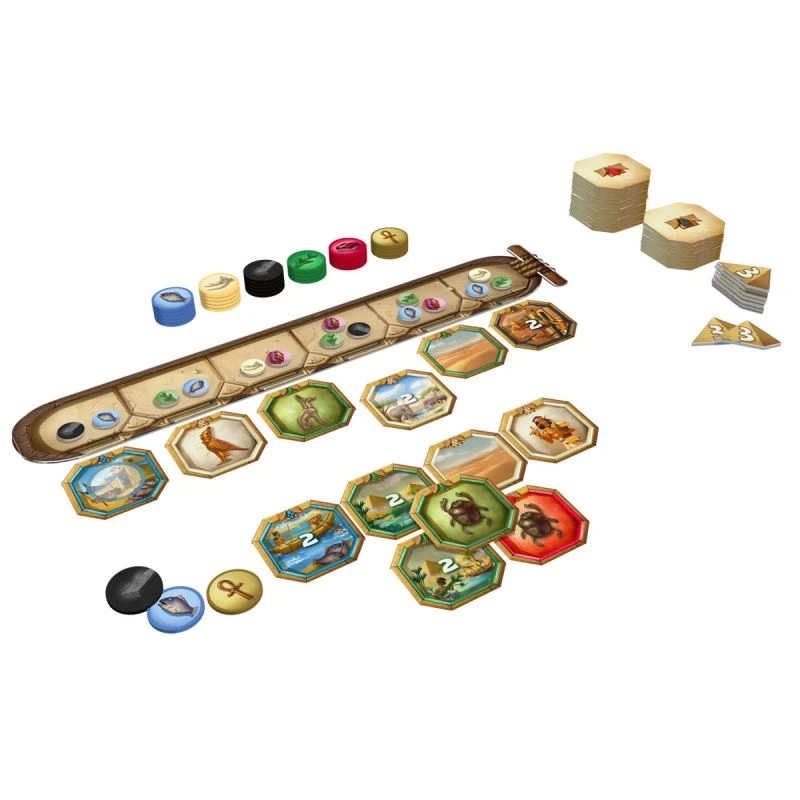 Ankh’or est un subtil mĂ©lange entre Splendor (jeu d’accumulation de ressources), JaĂŻpur (achat de tuiles sur un marchĂ©) avec un zeste de 7 wonders duel avec les combinaisons de tuiles et l’accumulation des points de victoire tout en veillant Ă ce que le ou les adversaires ne puissent pas acquĂ©rir les tuiles qui les intĂ©ressent. Ce n’est d’ailleurs pas un hasard si SĂ©bastien Pauchon l’auteur de JaĂŻpur est Ă©galement Ă l’origine de Ankh’or.