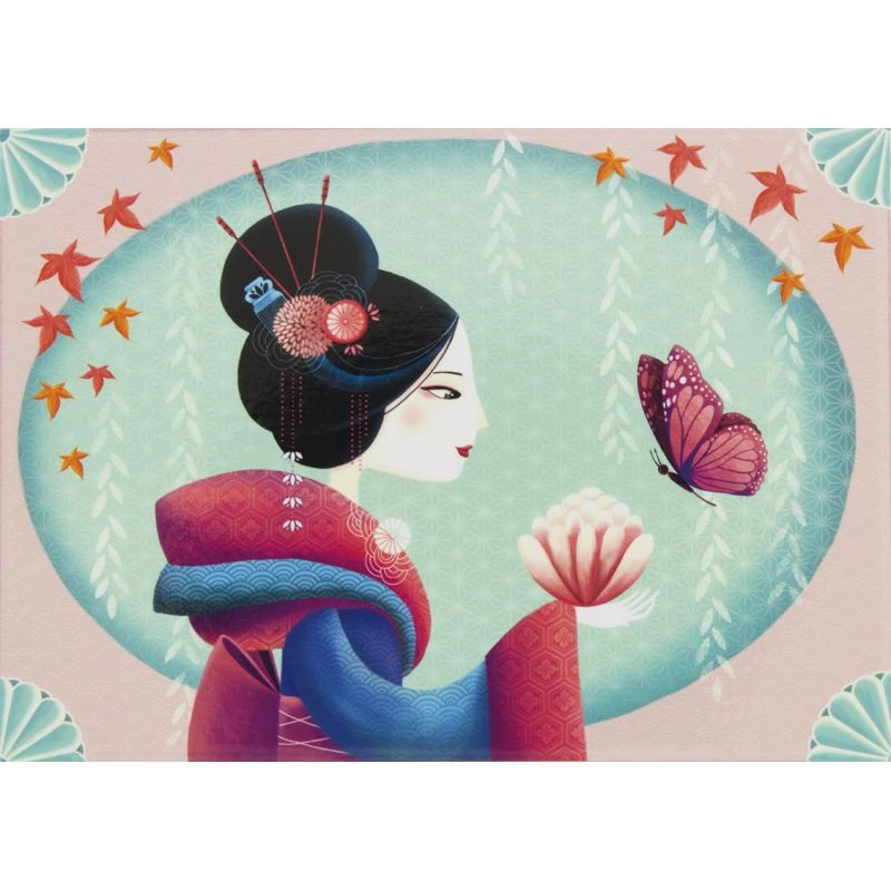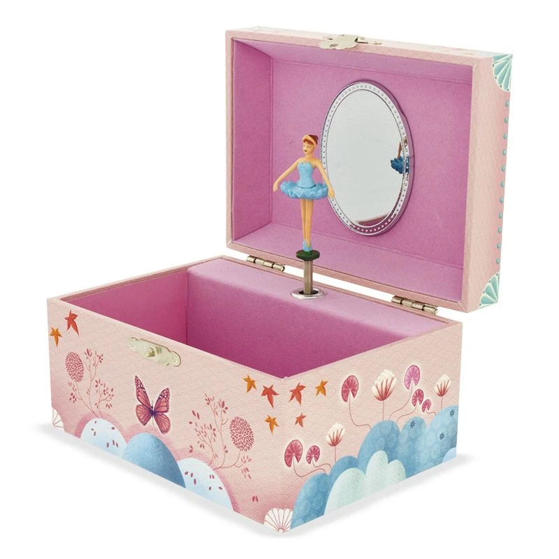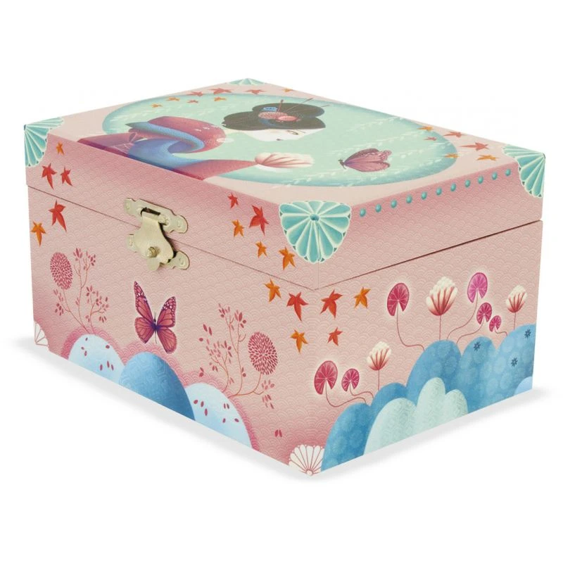 Cette boîte à bijoux musicale Lotus est délicatement illustrée sur le thème de l’orient avec cette jeune fille revêtue des habits traditionnels tenant dans sa main une fleur de lotus qui attire un beau papillon. Les illustrations comme les couleurs recouvrant la boîte à bijoux sont très doux grâce à leurs rondeurs et leurs tonalités pastel. La mélodie April Love de Paul Francis Webste accompagne la danseuse lorsqu’on ouvre la boîte.