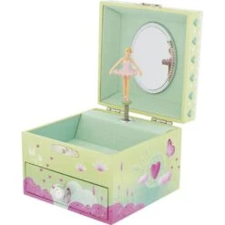 La boîte à musique papillon contient un grand compartiments pour ranger colliers, bracelets, bagues… ainsi qu’un tiroir pour cacher ses petits secrets.