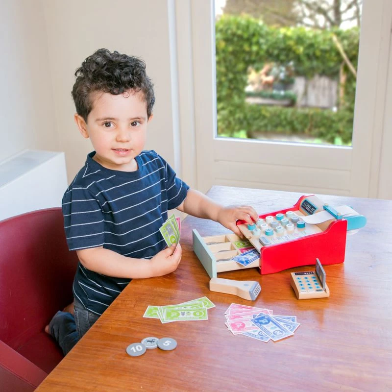 Cette belle caisse enregistreuse en bois est un jouet qui favorisera le jeu de rôle chez les enfants à partir de 3 ans. Ce jouet en bois est idéal en complément de dinette ou d’une cuisine en bois. Il permettra de jouer au commerçant ou à la marchande et de créer des scénarios plus complexe qu’un simple jeu de dinette. Le jouet est en bois mais l’aspect est moderne avec le scanner et le lecteur de carte bancaire.
