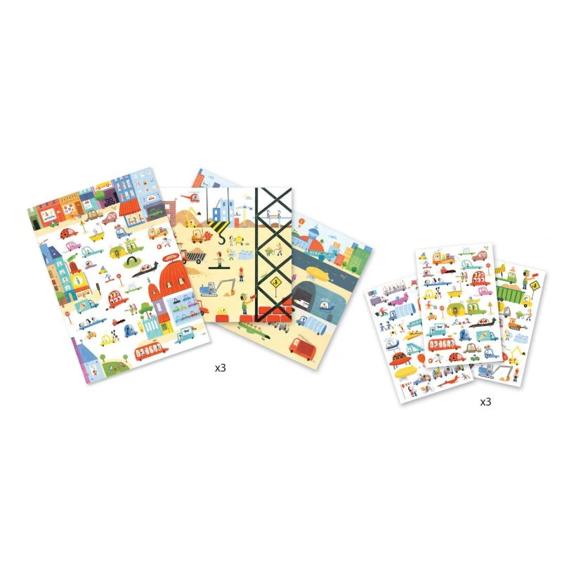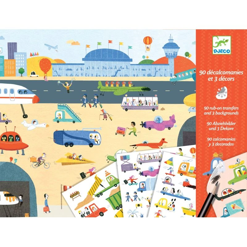 Fans de voitures, avions, engins de chantier … le coffret de décalcomanies tous au volant de Djeco est fait pour vous ! Les 3 scènes illustrées représentent un décor urbain, un chantier et un aéroport. Les enfants vont s’amuser à les remplir à l’aide des 3 planches de décalcomanies fournies contenant 90 motifs de véhicules en tous genres. Des voitures, bien sûr, mais également des bus, des caravanes, des engins de chantier, des hélicoptères, des soucoupes volantes … et même des baignoires à roulettes !