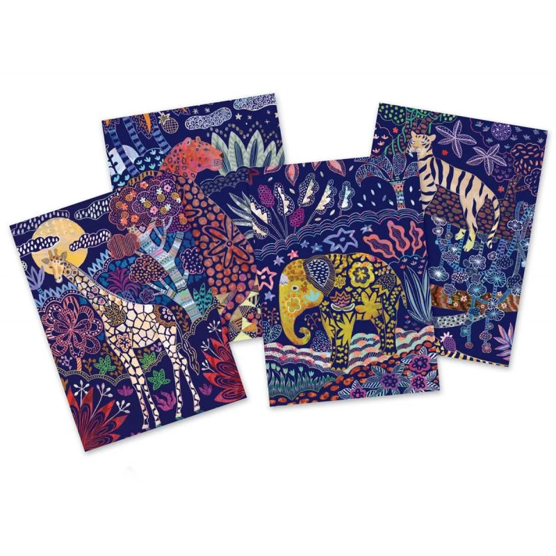 Djeco vous plonge au cœur de la savane avec son nouveau coffret de cartes à gratter Nature Luxuriante. Ce coffret contient 4 tableaux à réaliser représentant des animaux de la savane au milieu d’une nature riche et colorée.