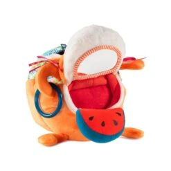 COQUILLE AMOVIBLE AVEC TRI DE FORMES : La coquille colorée de cet escargot comporte trois trous : triangle, carré et rond. Les enfants apprendront à reconnaître et trier les formes. Elle est dotée d’une ouverture avec élastique pour les retirer. Les formes à trier sont un triangle bleu, un carré jaune et un cylindre rouge.