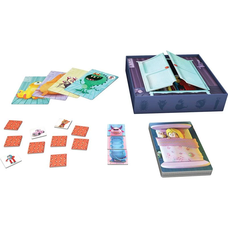 Dans ce jeu édité par Le Scorpion Masqué, les enfants devront retrouver parmi les cartes cachées le jouet qui effraye le monstre afin que ce dernier aille se cacher dans le placard. Mais attention si les enfants se trompent trop souvent, de nouveaux monstres apparaîtront autour du lit.