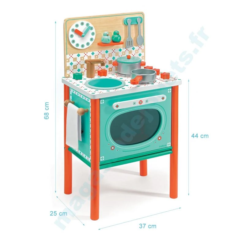 Dimensions de la cuisinière Djeco de Léo : 37 x 68 x 25 cm