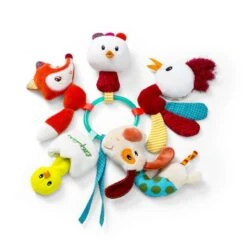 Le jouet d’éveil trousseau de clés les amis de la ferme est un trousseau de clefs plein de surprises. Bébé pourra s’amuser avec Jef le chien qui s’illumine lorsqu’on lui appuie sur le nez, Alice la renarde, Ophélie la poule, le petit poussin qui sort de sa coquille et John le coq Un vrai spectacle qui occupera bébé lors des promenades ou trajet en voiture.