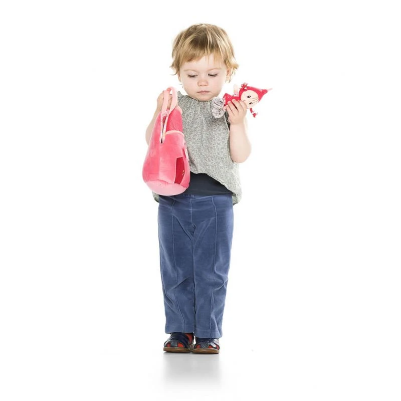 Ce joli sac à main réversible à l’effigie du personnage du petit chaperon rouge de Lilliputiens est plein de surprises. Il reprend la forme de la maison du petit chaperon rouge et la jolie figurine fournie peut se ranger de manière à sortir sa tête par la fenêtre. Vous trouverez plein d’accessoires : une clef en bois pour ouvrir la maison, un poudrier en forme de pomme avec miroir, un porte monnaie rouge-gorge et l’indispensable smartphone qui produit des sons pour encore plus d’amusement.