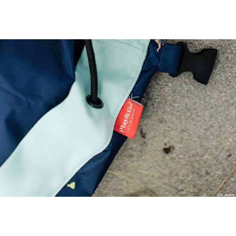 Découvrez la nouvelle gamme de sacs play and go Outdoor imperméables pour emporter vos affaires et l’utiliser à l’extérieur comme tapis de jeu. Ce tapis de jeu Surf de 140 cm de diamètre se transforme en un tour de main en sac de rangement à porter en bandoulière ou à la main grâce à sa poignée. Parfait pour la plage ce sac est décoré à l’extérieur avec des illustrations de surfeurs sur un fond bleu foncé et il est d’une couleur bleue claire unie à l’intérieur.