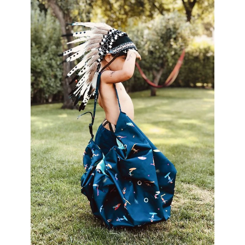 Ouvrez le sac en un tour de main pour le transformer en natte ou tapis de jeu. Fabriqué en polyester et TPU (polyuréthanes thermoplastiques) ce sac sera à la fois imperméable et résistant. Votre enfant pourra ainsi rester au sec en jouant dessus lors d’un pique nique au parc, d’une après-midi à la plage ou simplement chez vous au jardin. Et lorsqu’il sera l’heure de rentrer tirez simplement sur le lien coulissant pour tout replier et ranger les jouets dans le sac. Le sac est troué au centre afin de laisser s’écouler le sable après un après midi à la plage.