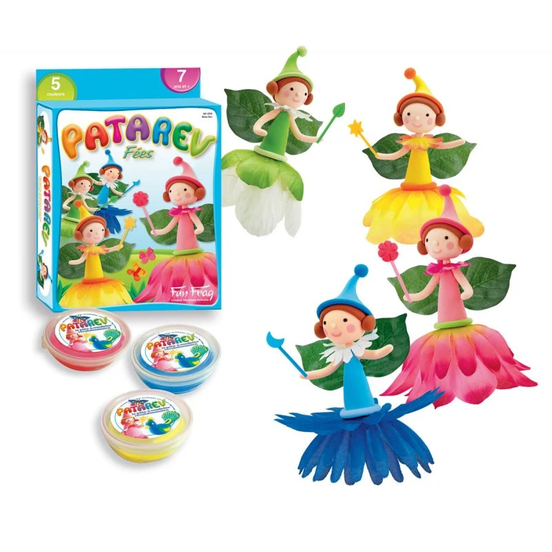 Sentosphère vous propose de créer des fées à l’aide de patarev et de différents accessoires. Pour cela le nouveau coffret « Patarev Fées » contient 5 pots de patarev de couleurs différentes et une notice pas à pas décrivant le processus de réalisation de ces 4 fées ainsi que des pétales et des feuilles en tissu. Une activité manuelle et créative et une idée de cadeau originale pour l’anniversaire d’une copine.