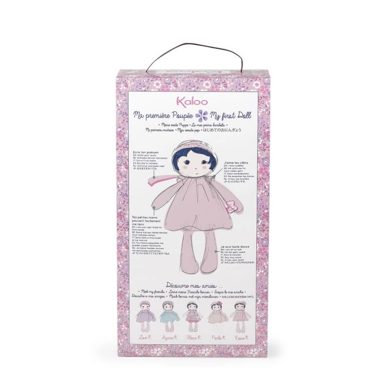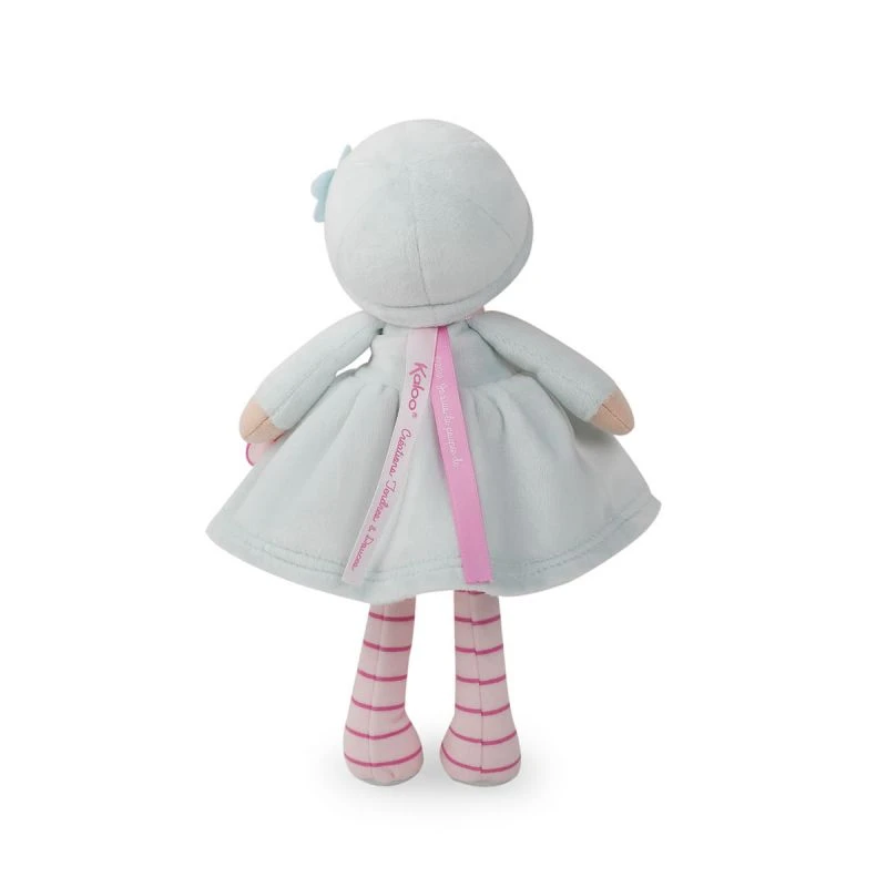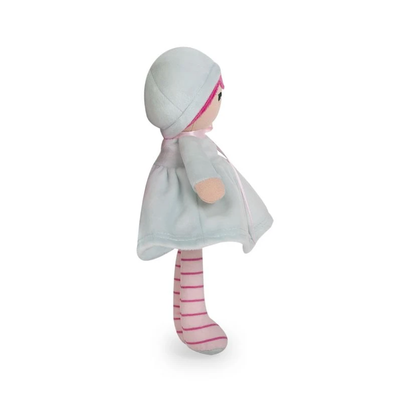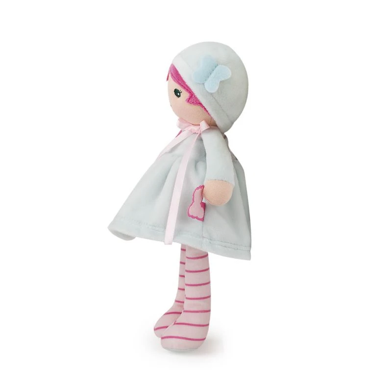 Azure est une poupée chiffon très douce de la collection tendresse de Kaloo. Avec ses cheveux rose et sa robe bleue pâle sur laquelle est brodée un petit cœur, Azure est une adorable petite poupée de tissu. Son petit ruban rose, ses bas rayés et ses cheveux roses lui donnent beaucoup de style. Un petit papillon posé sur son chapeau donne à cette poupée un air tendre et délicat.
