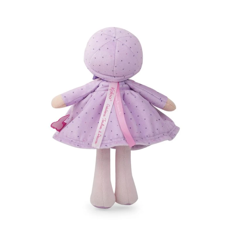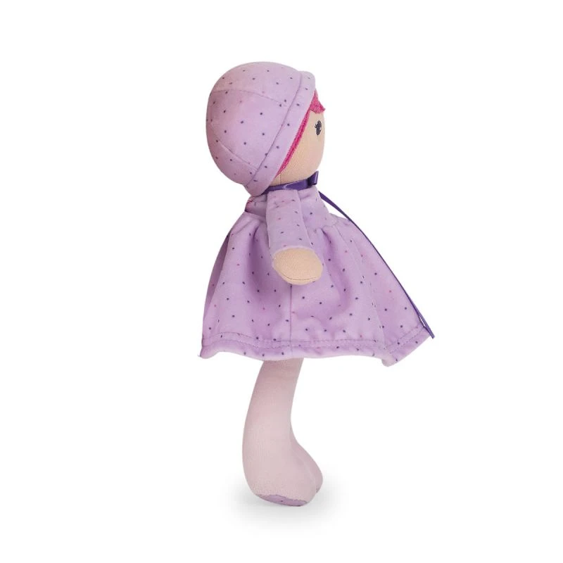 Lise est une poupée chiffon très coquette de la collection tendresse de Kaloo. Avec ses cheveux rose et sa robe mauve à pois sur laquelle est brodée une petite fleur et un long ruban violet, Lise est une ravissante poupée de tissu. Souple et douce elle est idéale pour les petites filles qui ne mettront pas longtemps à l’adopter.
