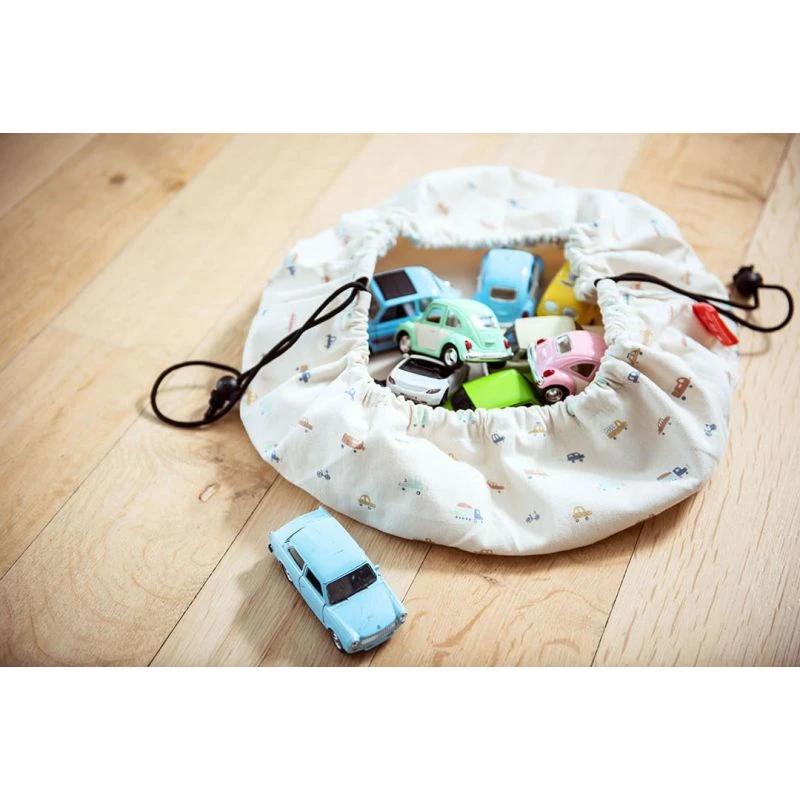 Le sac mini cars de Play & Go est un petit sac de rangement (40 cm de diamètre) qui sera parfait pour ranger les voitures miniatures à la fin du jeu. Il sera tout aussi pratique pour emmener des Legos, des crayons de couleur, des figurines, des poupées …