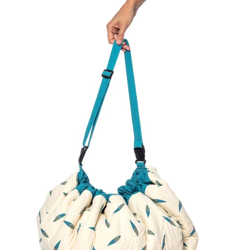Le tapis sac est livré avec une bretelle réglable à clipser sur le sac pour le transporter facilement sur l’épaule ou sur la poussette.