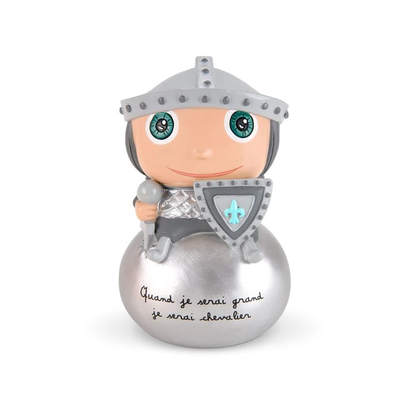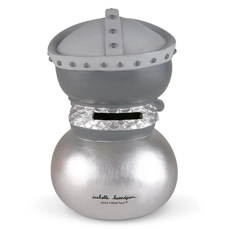 Une tirelire joyeuse et rigolote qui plaira particulièrement aux jeunes garçons qui seront fiers de confier leurs économies à ce chevalier.