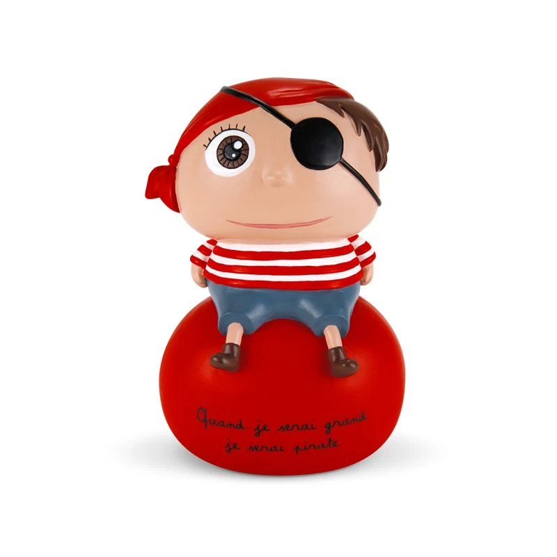 Une tirelire joyeuse et rigolote qui plaira particulièrement aux jeunes garçons qui se réjouiront de confier leurs économies à ce jeune pirate.