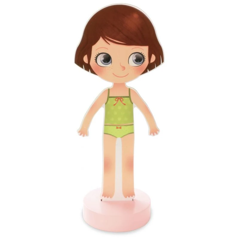 Comme beaucoup de petite fille Chloé est coquette et son dressing est bien garni. Comment va t elle s’habiller ce matin ? Quelle activité va t elle faire aujourd’hui ? A toi d’inventer la vie de Chloé et de l’habiller en conséquences à l’aide des 37 vêtements et accessoires magnétiques.